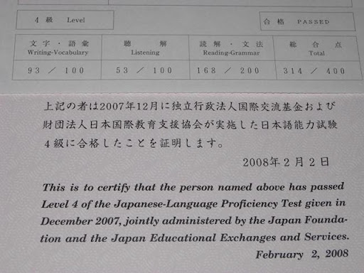 日本語能力試驗4級考試結果